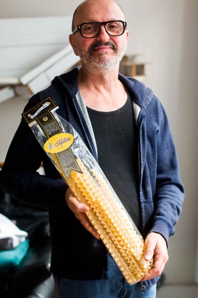 The mafaldine (sometimes called mafalda, or as they call it in France, malfadines), for this recipe may require a trip to an Italian specialty food store or a search online. There are Italian food shops in every neighborhood in Paris but none near me had it, so I went to Eataly, which did. (Update: A week later I saw it at my local Carrefour supermarket, made by Barilla.) It resembles mini ribbons of lasagna and has a lot of ruffles and surface area, so picks up sauces well, but if you canโt get it, Chef Darroze recommends tagliatellis, although closer would be fettucini. However since neither has little ridges that would catch the sauce, I might suggest Farfalle, bow-tie pasta.