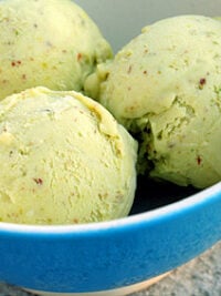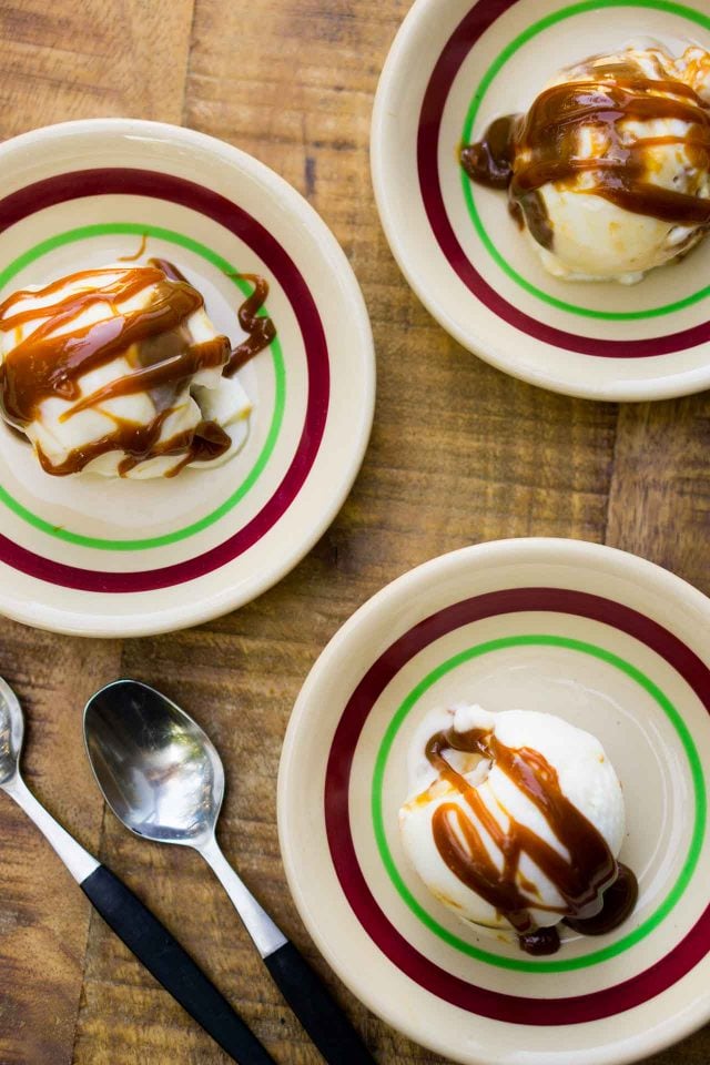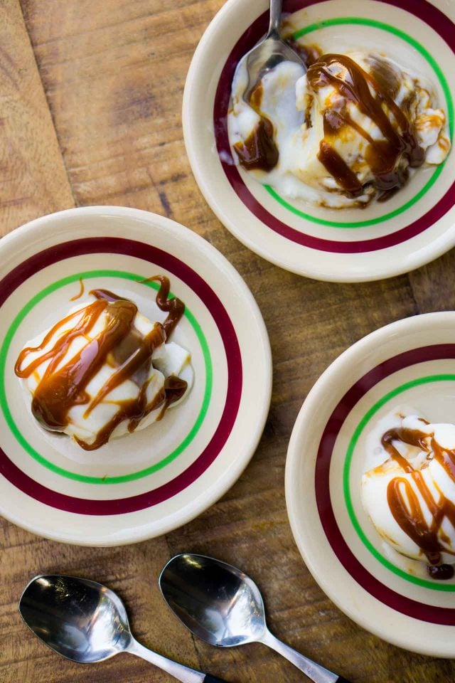 This one has no cream or egg yolks, so it is lower in fat, for those concerned about keeping tabs on that. (Although the swirl of cajeta inside, and on top, kind of makes that point moot. But you can omit it.) I add a little fresh goat cheese to the base to dial up the goaty tang of the ice cream, but itโll be a little firmer to scoop than traditional ice cream since it doesnโt have cream or egg yolks. You can check out some of my strategies for keeping homemade ice cream soft, or you can take it out of the freezer 5 to 10 minutes before serving. Or, you can eat it all as soon as youโve finished churning it, which I nearly did after licking the dasher just after I pulled it out of the machine (churnerโs bonus!) and found it hard to stop.