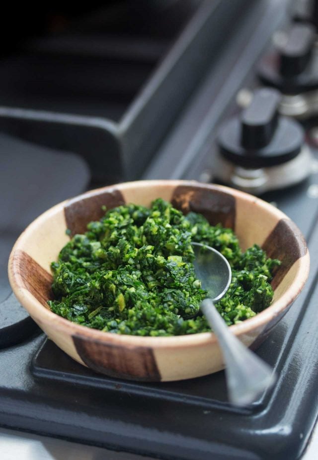Although I didnโt do it with this batch, I often dry out the gremolata a little, so itโs less clumpy. You can do that by spreading it on a baking sheet and letting it air out a bit for about an hour, running yourย fingers through it every once in a while and breaking up any clumps. That probably makes aย more photogenic gremolata, but with the light fading fast as dinnertime approached, and a couple of hungry mouths to feed, dinner made it to the table shortly after I was able to capture a few snapshots.