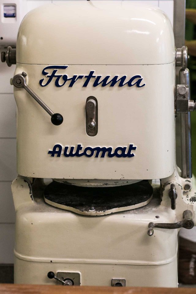 Hewing close to tradition isย Bernhรถfstbakarรญ. The owner, bakerย Sigurรฐur Mรกr Guรฐjรณnsson, makes the pastries at the oldest bakery in Iceland. Their dough divider, above, has a serial number on it: Number #38, which he learned was, indeed, the thirty-eighth dough divider that the manufacturer made.