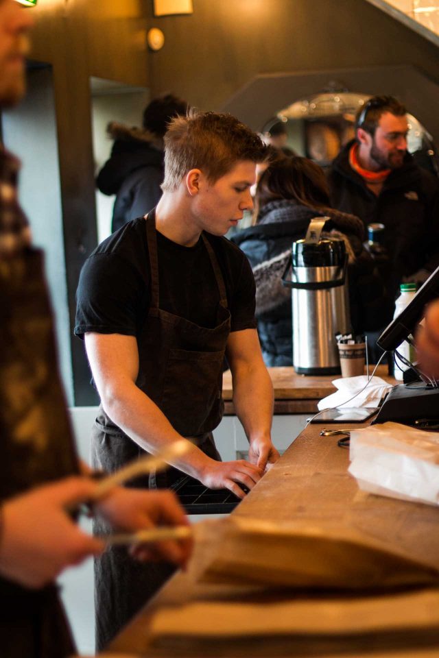 Unlike other bakeries, รgรบst Einรพรณrssonย set up his bakery specifically so the bakers are just a few feet away from the customers, so thereโs little distinction between the customers and the bakers. Their opening hours just say โearly,โ and people can come in at any hour they want to pick up bread. (Which is good to know if youโre jet-lagged, and/or canโt wait to have one of their pastries.)