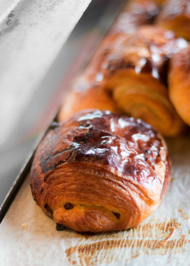 The bakery is packed and I spent a few minutes in the middle of the kitchen, trying to stay out of their way while polishing off one of the best pain au chocolats of my life. (I had my eye on a sesame pretzel but the woman in front of me in line snagged it right before it was my turn โ why does that always happen to me?)