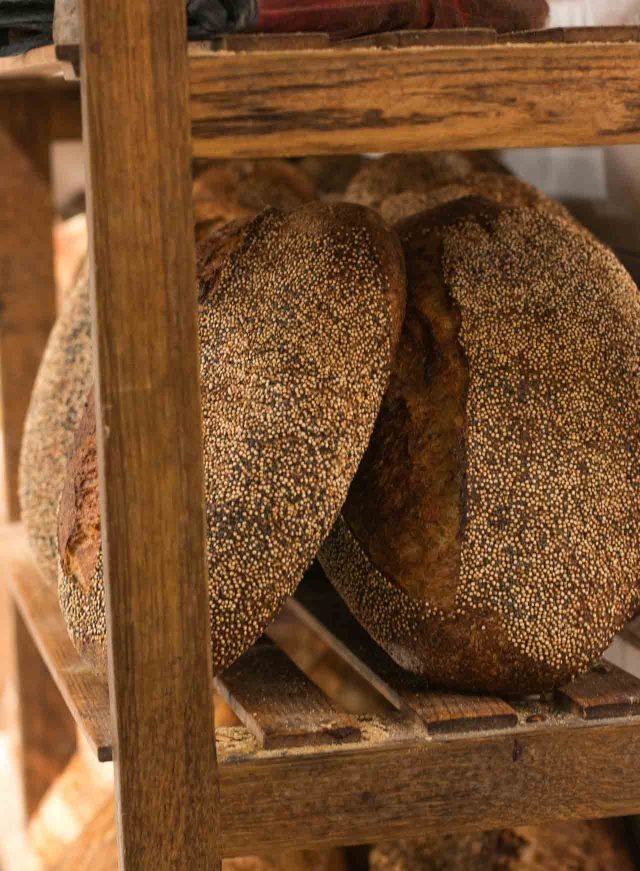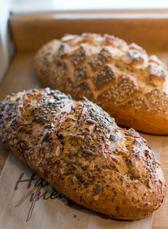 At this family owned bakery, I was impressed by the croissants, as well as the glazed apple cakes, but especially the hearty loaves,ย made with everything from kamut and quinoa, to smoked pumpkin seeds and โ of course โ rye.ย I wasnโt there at lunch or dinner, but they serve both, as well as breakfast.