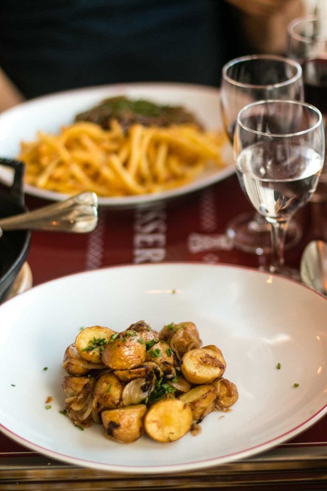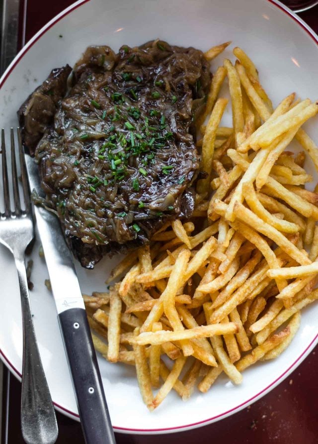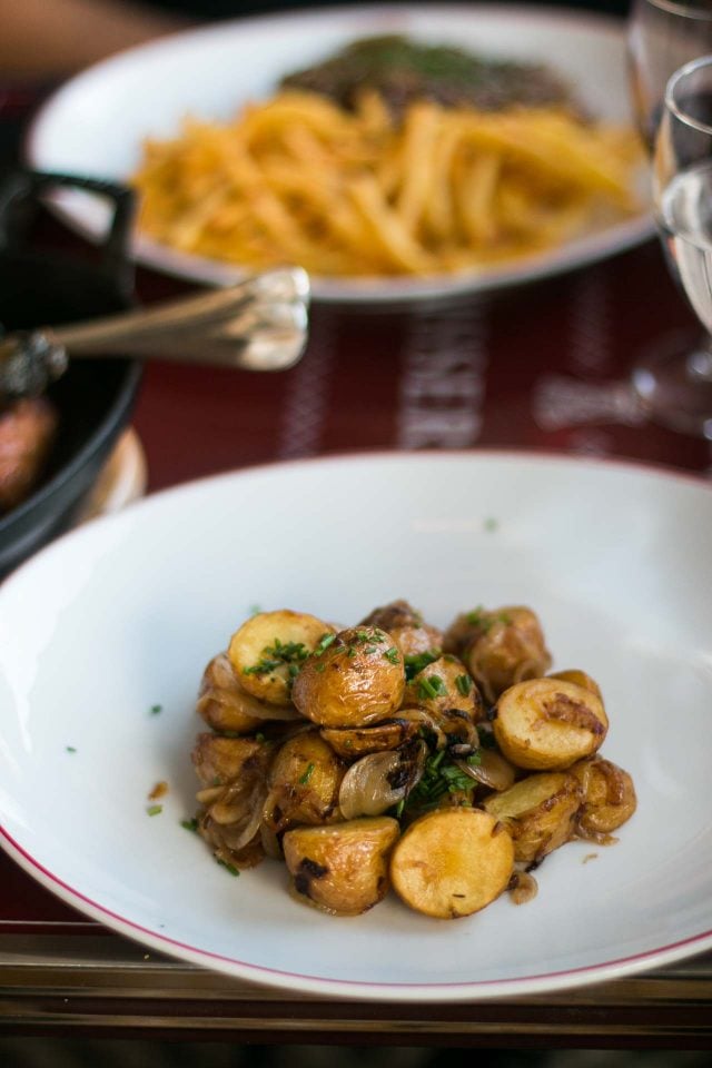 On my third visit, with a friend from New York and another from London (both esteemed cookbook editors, and discerning diners), after rhapsodizing about the fries, out came a plate heaped with white, soft, and undercooked fries, the kind I do my best to avoid in Paris โ which is why I always say โBien dorรฉes, sโilย vousย plaรฎtโ (โWell browned, pleaseโ) when ordering frites in France. My friend from New York was stumped.