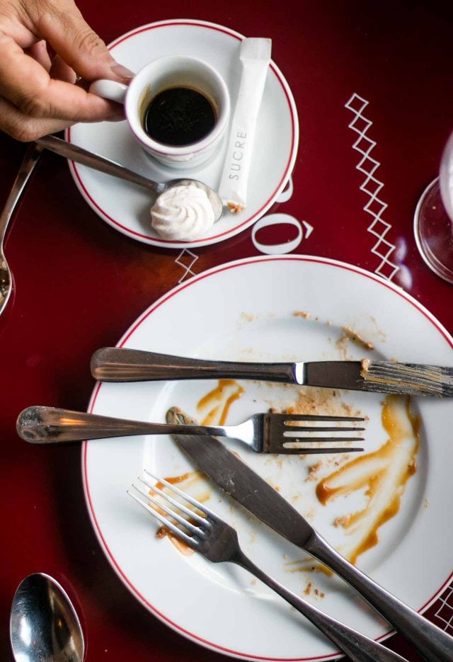 Then I had a Paris-Brest, shaped like an รฉclair (an idea I put forth in My Paris Kitchen,ย to please the pedants), and it was one of the best desserts Iโve had in Paris. My friend ordered the รle Flottante this time around, and it was excellent, with the smooth flavor of vanilla rounding out the eggy custard. They were out of the Paris-Brest, though, on my last visit, so I recommend asking them to hold one for you at the beginning of your meal.