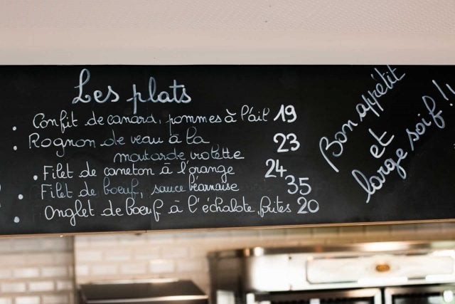 One restaurant owner told Romain and I when we asked him about that, he told us that he used to serve the fries crisp, but customers complained. But I think we need to keep up our vigilance. Since we were there on a Sunday night, perhaps the chef had the night off. So I hope it was just an aberration. Just in case, though, you might want to memorize โbien dorรฉesโ or write it on your arm in pen so you donโt forget.