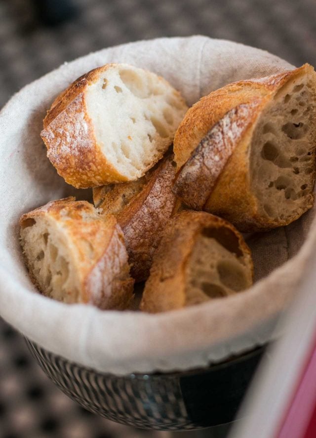 However, on the third visit, the salt wasnโt on the slate plate. When I asked for some sel, the waiter pointed to the salt shaker on the table. But itโs the flaky salt that really makes the dish, so I smiled and asked if it was possible to get some flaky sea salt, and we were presented with a little dish of the flaky salt, but pre-mixed with pepper, which doesnโt quite have the same effect as salt by itself.
