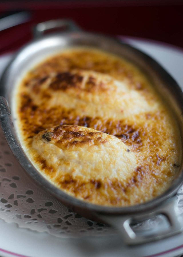 The other starter Iโve liked was the baked pikeย quenelles, two mousse-like ovals sitting over a bed of duxelles of mushrooms, blanketed in cream sauce. There was a lingering seafood-like flavor in the mushrooms, which I could have sworn was from snails, but the server said it was just from the mushrooms. Theyโre quite deliciousโฆand filling, although the portion size isnโt overwhelming, although I recommend sharing an order, unless you have a particularly hearty appetite. I also recommend if thereโs a housemade terrine on the menu, that you order that, too.