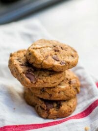 You (and I) can relax, because these chocolate chip cookies do use butter, but get an underlying richness from sesame paste, a common ingredient in Middle Eastern cooking that I always keep on hand. So although I thought Iโd done everything possible that a man could do to a chocolate chip cookie, and then some, I was finally ready to tackle a batch of these chocolateย chip cookies.