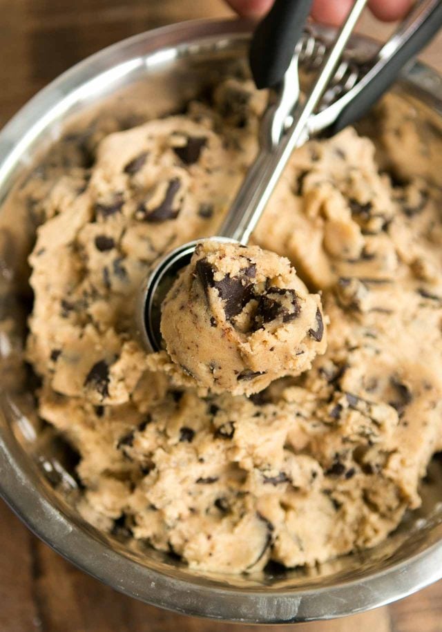 - In a small bowl, whisk together the flour, baking soda, and kosher or sea salt. With the mixer on low speed, add the dry ingredients until just combined, then add the chocolate chips. Do not overmix. Cover the dough and refrigerate overnight.