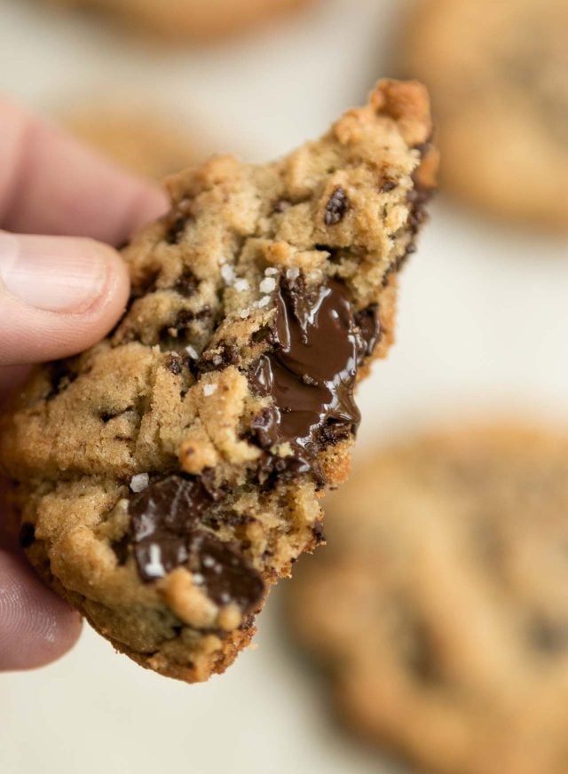 These cookies were some of the best chocolate chip cookies that have ever come out of my oven, and I donโt say that lightly. The tahini gives them a gentle savory taste, with a faint musky flavor that pairs remarkably well with dark chocolate and a touch of salt, so donโt be afraid to use a very strongly flavored chocolate. I futzed with the original recipe a little, to make them chewier, and couldnโt resist adding even more chocolate. But can you blame me?