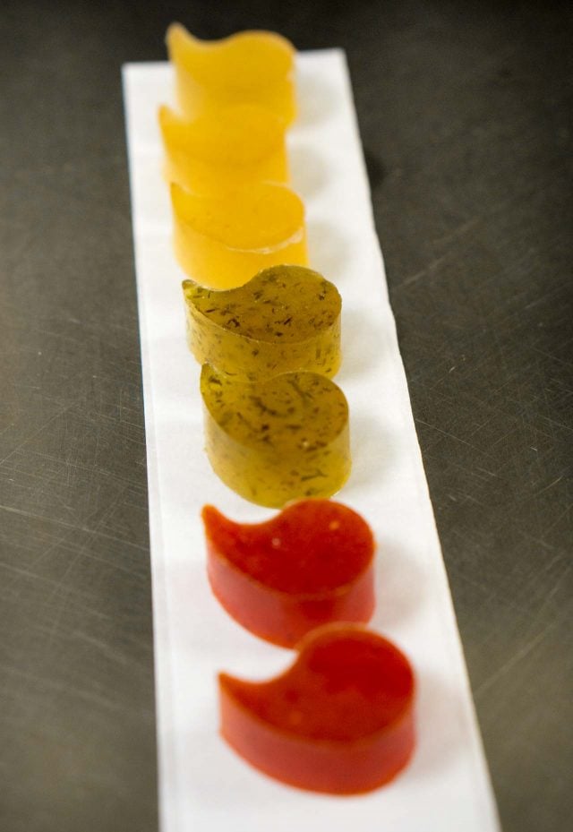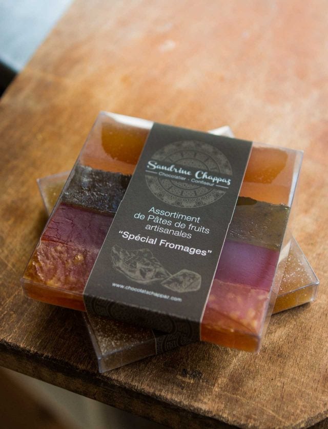 The pรขtes de fruits โSpecial Fromagesโ were some of the most inventive and interesting Iโve ever had. Theyโre so special that she makes them for The Ritz hotel in Paris, in apostrophe-like shapes. They were the first thing we tasted, each made with most local herbs one could imagine: She pointed to the bushes just outside the window, to prove her point.
