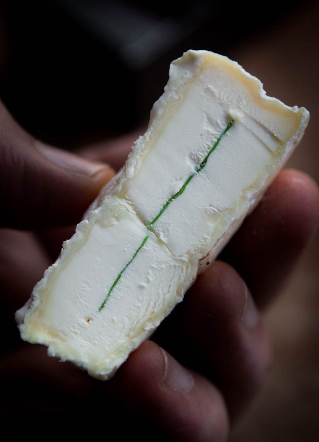 One was a cheese with Chartreuse*.ย Itโs made by La Ferme de Platimay. (The label is on my Instagram page.) I didnโt know that Sandrine Chappaz made the thin disk of Chartreuse inside, a wafer-thin jelly that gets inserted into the cheese while itโs being made.