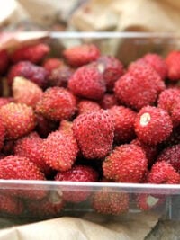 Although America is known as the land of HUGE food, these tiny baby carrots are tender and very sweet. My first week as a cook at Chez Panisse, I spent a few hours peeling a case of themโฆonly to discover later they were going to be blended up and made into soup!