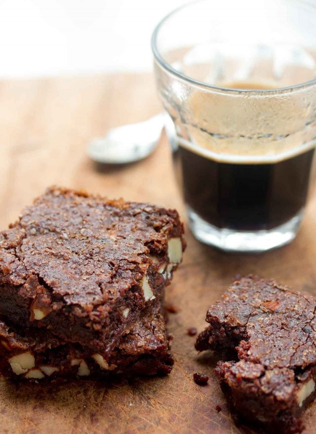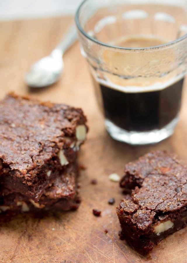 Digging into my stash of unsweetened chocolate, I made these in my Instagram stories and they were a big hit with questions coming out me left and right. The nuts and nibs are optional, and the result into a Katharine Hepburn-approved brownie. (Her family lived in our neighborhood when I was growing up, but I never met her, unfotunately.) If you donโt have unsweetened chocolate, check out one of the other brownie recipes on my blog.