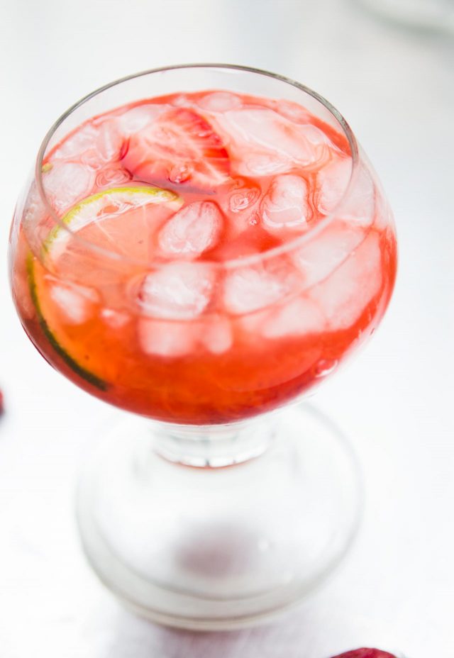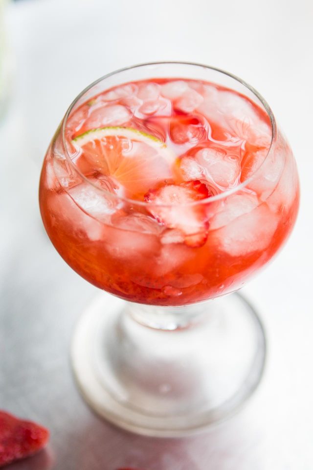 - fresh strawberry slices (or whole, if tiny) and a lime wheel, for garnish