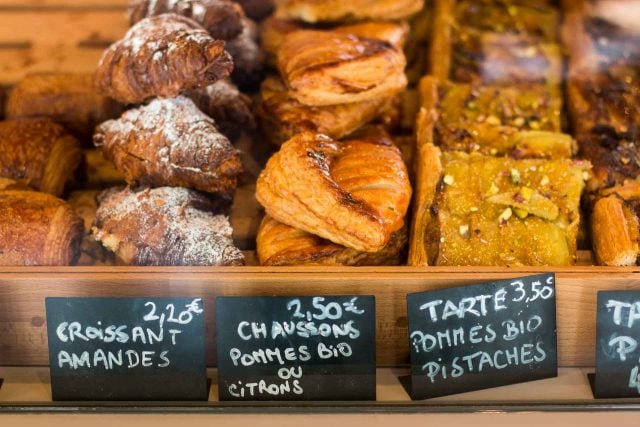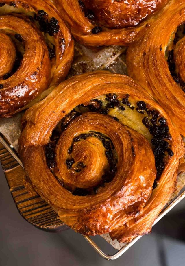 Perhaps my favorite pastry here is the individual lemon meringue tart, which really, is generous enough to feed twoโฆor maybe four. At my place, we eat it cut into four pieces, because itโs so monumental. The pain aux raisins uses tiny currants, rather than the standard raisins, because they taste better to the bakers. And while theyโre happy to do French classics, they like to touch down in other cultures, too.