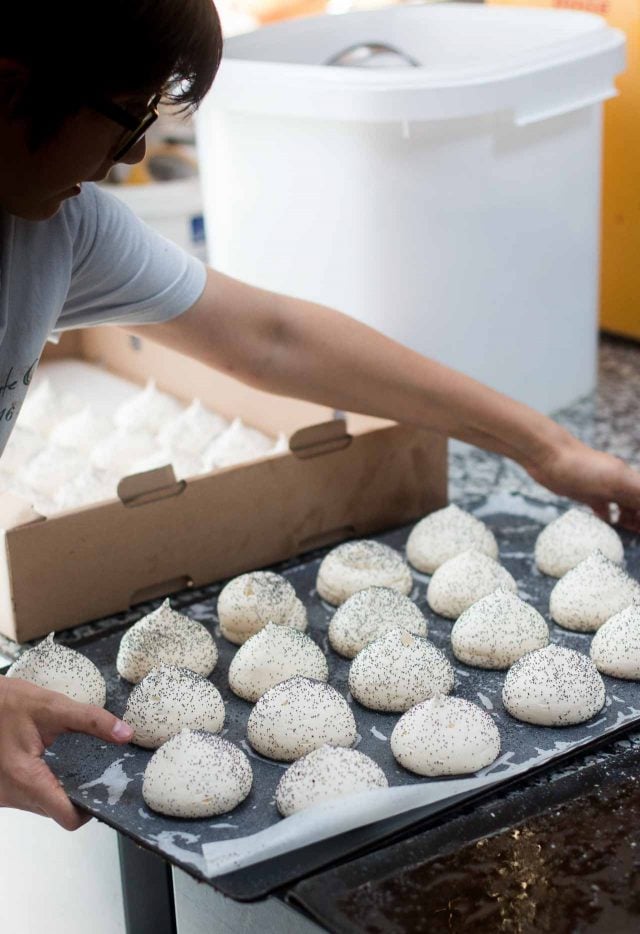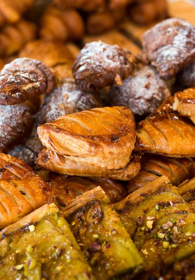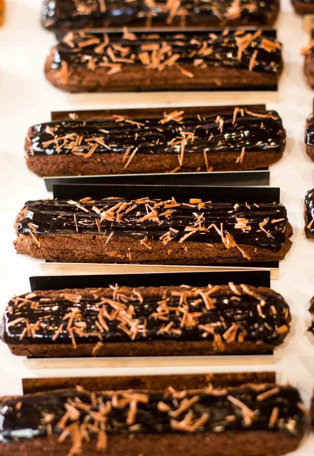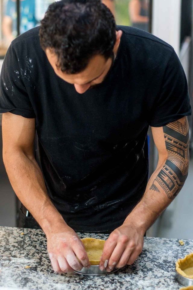 Everything is made in the shop and if you walk down the side street, you can see everything being made in the big picture window next to The French Bastards as everyone works around the cool granite table, which keeps the butter in the laminated doughs that they use for their morning pastries (above), from melting.