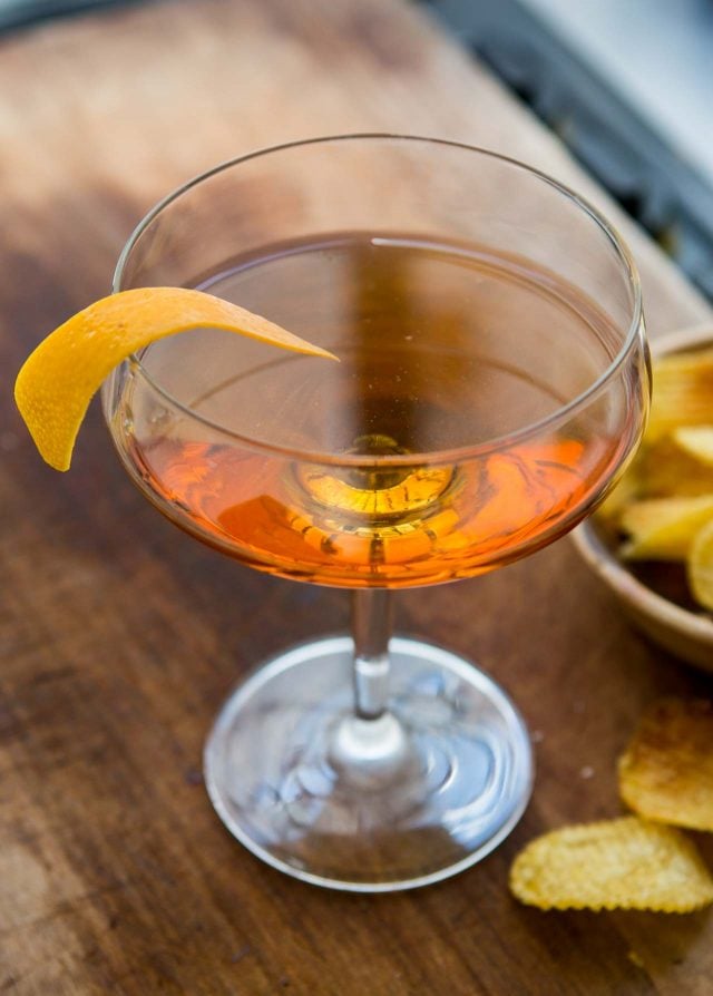 - Strain into a chilled cocktail or coupe glass. Garnish with orange twist.