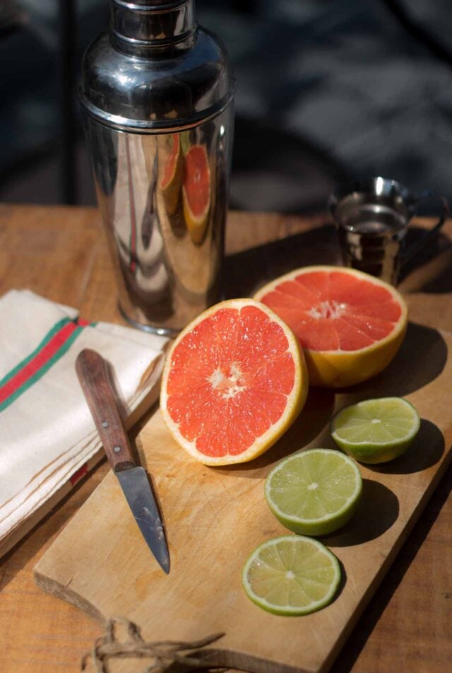 - Add the rum, lime and grapefruits juices, and maraschino to a cocktail shaker. Fill with ice and shake until well-chilled, about 15 seconds.