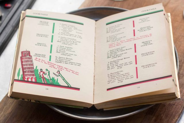 Older cocktail recipes can require a bit of decoding. Modern cooks, bakers, and drink-makers favor precision, and itโs hard to discern what โ3/4 glassโ of gin is. Another vintage cocktail book on my shelf has a recipe that calls for โ 1/6 grenadine, 1/6 Cederlundโs Swedish Punch, 1/6 Calvados, 1/6 lemon juice, and 1/3 gin.โ Forgot trying to find Cederlundโs Swedish Punch (although that punsch, which is the correct spelling, sounds worth tracking down), but after doing the math on those measurements, Iโd be ready for a stiff drink, too.