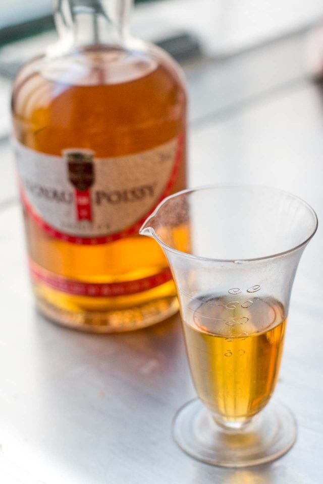 I became fascinated with is Noyau de Poissy because itโs the oldest liqueur in France thatโs not connected with any religious order, made from apricot kernels macerated plucked from apricots that grow in the region where itโs made, which is about an hour from Paris. The flavor is intensely almond-forward, its sweetness tempered by the nutty kernels with gentle vanilla and orange notes. It can be enjoyed on its own as an aperitif or digestive, in small quantities, but it really shines as a background flavor when used with other ingredients, and itโs strong enough to hold its own in any cocktail. (Itโs also nice to add a few drops to any desserts made with almond paste or almond flour, or any of the fruits mentioned above, as well as pineapple.)