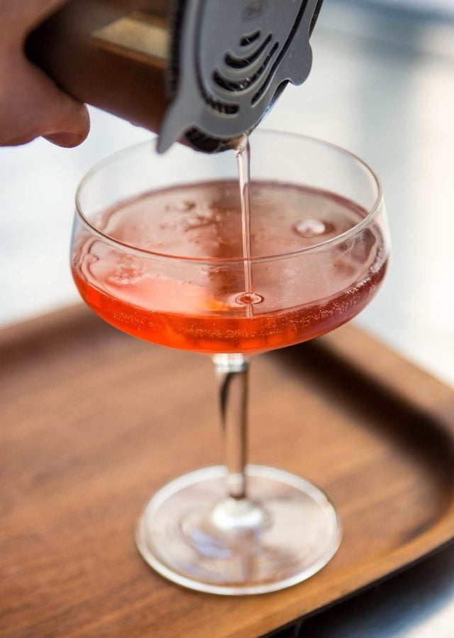 - Shake vigorously until well-chilled, then strain into a chilled coup glass. (Use the double straining method if you want to make sure there is no pulp in the cocktail.)