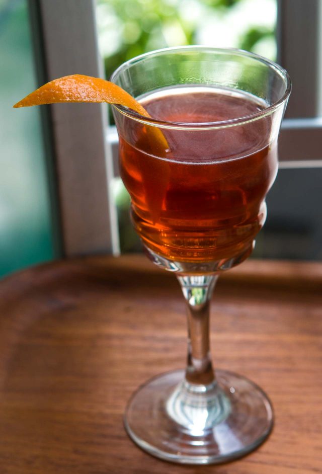 The Tunnel cocktail is Franckโs take on the Negroni, using similar ingredients and proportions, but making them distinctly โFranck,โ as one could say. (Some of his other drinks are featured in his book, French Moderne: Cocktails from the 1920s & 1930s.) Brisk gin, oaky dry vermouth, two kinds of sweet vermouth, along with an obligatory pour of bitter Campari, come together to make a perfectly balanced โ and decidely French โ drink.