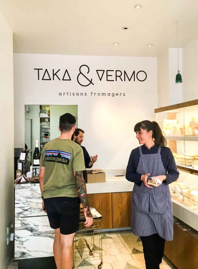 I love the passion that exudes from the couple that owns Taka & Vermo. After an epic 10,000 kilometer (over 6,000 miles) journey around France and Europe to meet small farmers and cheesemakers, owners Laure Takahashi and Mathieu Vermorel opened their bright, modern fromagerie with the intention of championing the artisans they met on their travels.ย