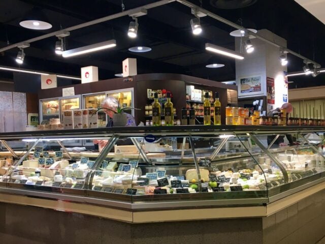 Two items that I always purchase here are Saint-Domnin de Provence, a tangy goat cheese decorated with a sprig of lavender, and Hรฉrcule, a hard, buttery mixed sheep and goat milk cheese produced in the Pyrรฉnรฉes mountains. Shopping here is a delight, both for the selection of cheeses and the wonderful staff.