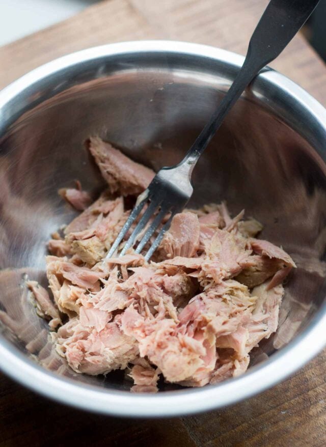 - Two 6-8 ounce (340-450g total) tins tuna packed in oil, drained