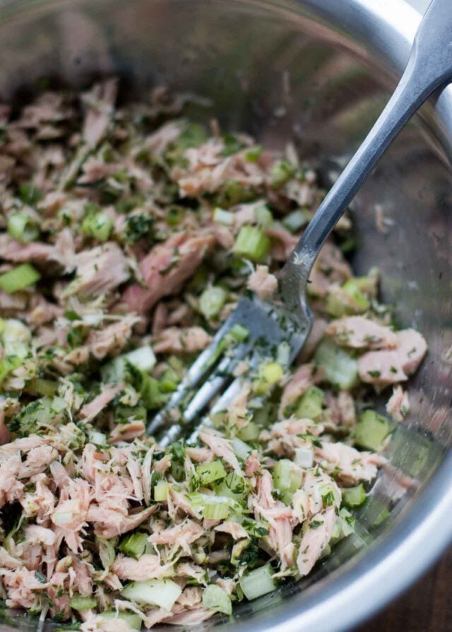 I tweaked the recipe to my taste. Ina recommends an optional teaspoon of anchovy paste but I added chopped capers to lend a similar salty brininess that compliments the tuna. I dialed down the mayo because I like my tuna salad to focus more on the tuna than the binder, although I know that a lot of people like tuna salad heavier on the mayo than I do.