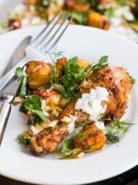 So if find yourself with some fresh dill on your hands, and the weather is promising where you live, I canโt think of a better way to accompany a glass of wine or whatever youโre serving for dinner than this cooling cucumber salad enlivened with fresh herbs, a little garlic, and the tang of yogurt.