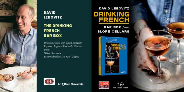 The Drinking French Bar Boxes are now back in stock, and each includes a bookplate-signed copy of Drinking French as well as a specially-curated selection of French spirits to make my favorite drinks in the book.
