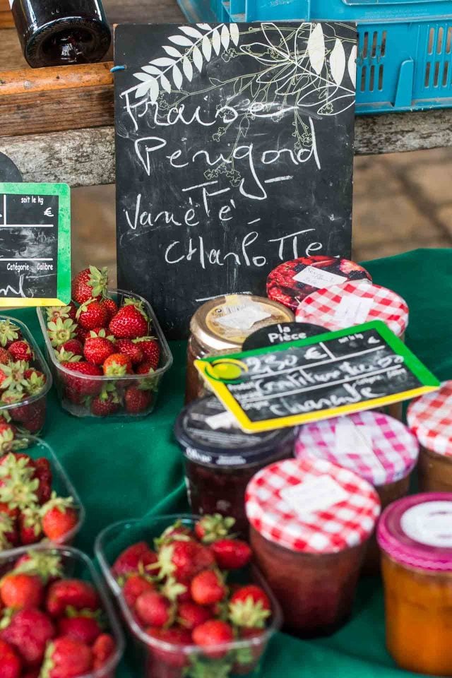 Located in the region now known as Nouvelle-Aquitaine, formerly (and still referred to, as) the Poitou-Charentes, the outdoor market inย Villebois-Lavalette is not a sprawling affair, but lovely and compact, taking place in the center of town on Saturday untilย 1pm, underneath ancient wooden rafters. (The website for the town also says a smaller market takes place on Wednesdayย there as well, although I donโt know if itโs actually a market, or just a few vendors.)