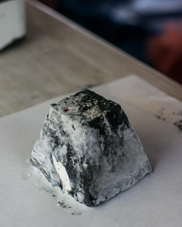 I had my eye on the last ash-coveredย pyramide, which looked similar to Valenรงay cheese. And got it.