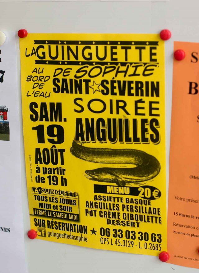 We also decide to take a pass on going to the local Soirรฉe anguilles, or Night ofย Eels, that was coming up. I could only imagine the cauchemars (nightmares) people must have after that event. I know, because I still canโt forget when I working in a restaurant kitchen where the chef filled a sink oneย night with live eels, which kept slithering out and writhingย around the floor, trying to escape from the kitchen. He kept grabbing them and tossing the slippery beasts back into the tangle, with a loud โthunkโ as they hit the side of the stainless-steel basin.