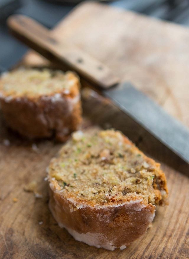Since itโs summer, people with gardens are often bemoaning they have too many zucchini and are always looking for ways to use up their bounty. With a crunchy lemon glaze, Iโm going to go out on a limb and say itโs the most delicious way to present a zucchini cake, whether you zucchini comes from your garden, or not.