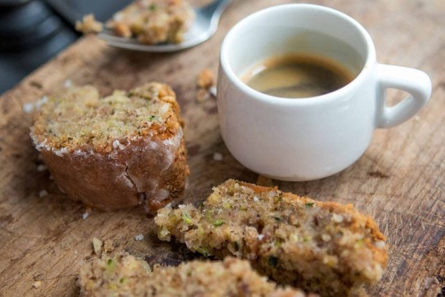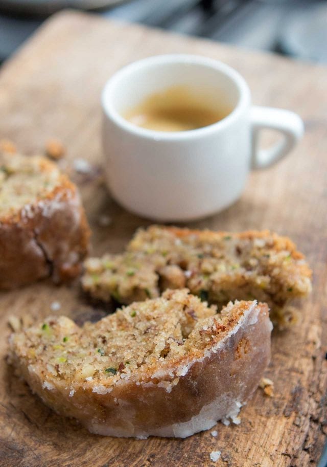 The genius of the glaze is adding granulated sugar, which gives it an especially lemony, sweet, yet tangy crunch. The glaze is not a looker (which finally made me break out my silicone pastry brush for the first time, and Iโm never going back to bristles again) but it tastes amazing with the spicy zucchini cake and Iโm happy to let looks step aside to give way to flavor.